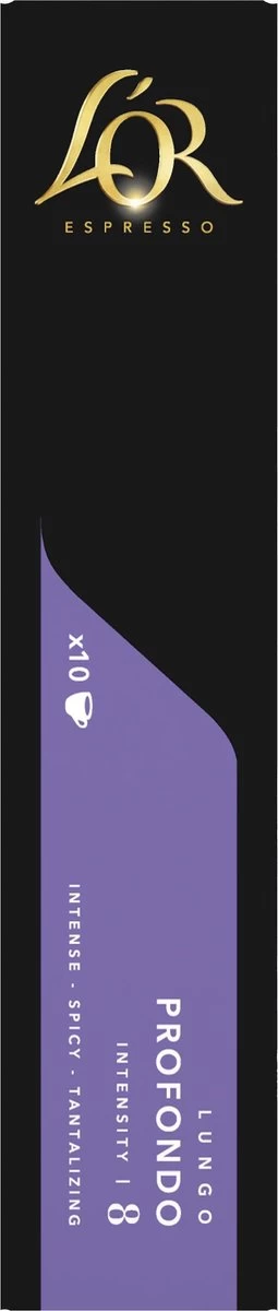 Lungo Profondo overtuigt je met zijn intens en kruidig aroma van geroosterde amandelen en uitdagend zoethout, afgerond met een glinsterende bronzen crèmelaag.